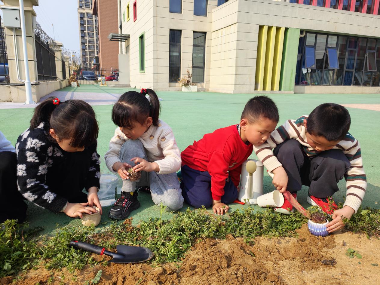 与此同时,金店社区联合辖区幼儿园的小朋友们也开始了植树节活动。社区志愿者和幼儿园老师们早已准备好各种多肉植物、盆土、工具以及装饰用的彩石,整齐地摆放在活动区域。志愿者们首先向小朋友们介绍了植树节的意义以及多肉植物的养护知识,并生动地展示了多肉盆栽的种植过程。随后,小朋友们便在老师和志愿者的协助下,挑选自己喜欢的多肉植物,亲手进行种植。他们用小铲子挖土、植入多肉、盖上土壤,并细心地拍打土壤,确保多肉植物能够稳稳地扎根。最后,小朋友们还在自己的盆栽上添加了彩石,让盆栽看起来更加美观。孩子们纯真的笑脸与可爱的多肉相互映衬,构成了一幅幅温馨美好的画面。小朋友们开心地展示自己的作品,兴奋地说:“我要把这盆肉肉带回家,好好照顾它!”家长们也感慨道:“这样的活动很有意义,让孩子亲身体验种植乐趣,培养他们的环保意识。”